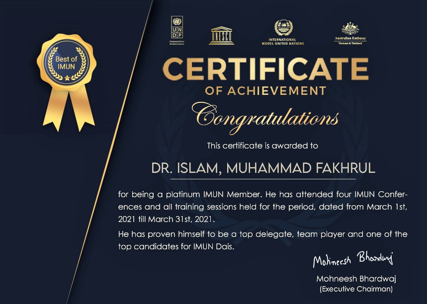 Founder & Trustee Chair, Dr. Muhammad Fakhrul Islam Foundation (www.mfifoundation.org), a charity supporting distressed people in Bangladesh